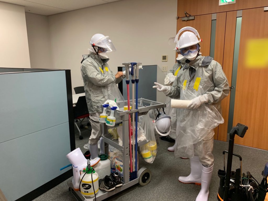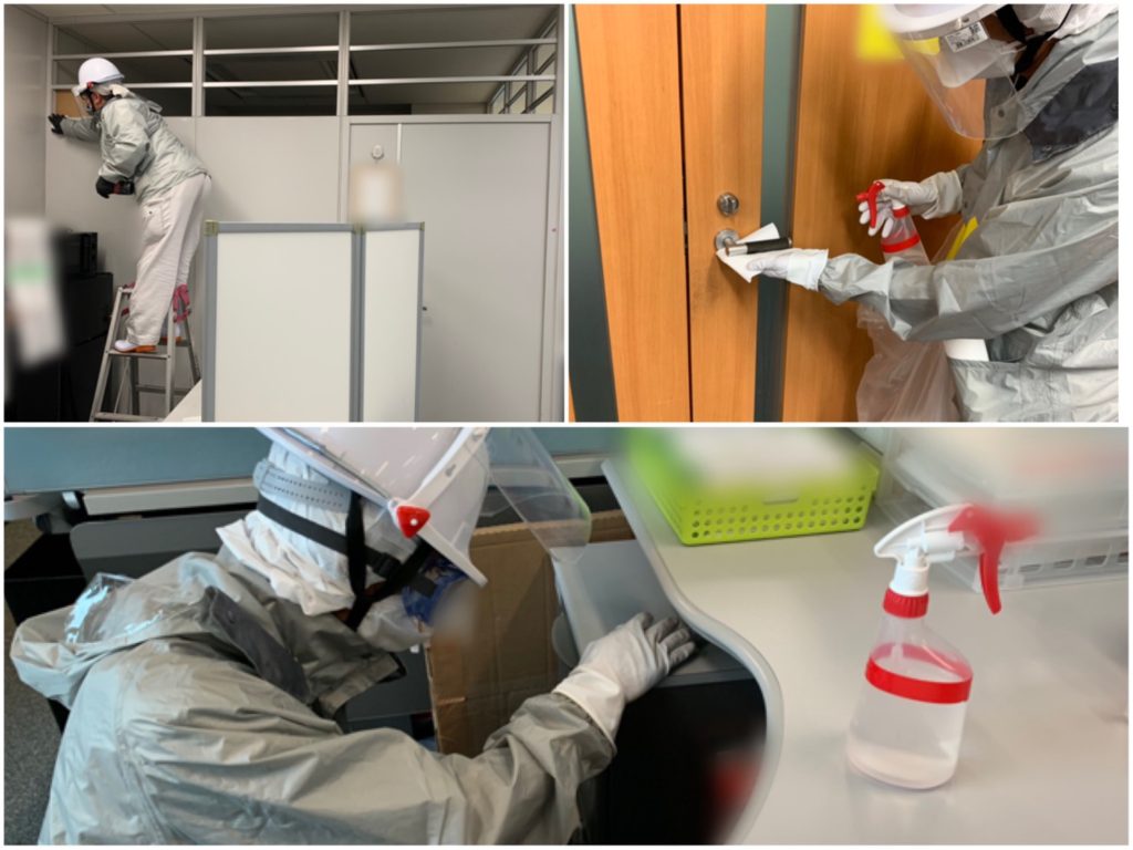 先日、6月から通常勤務の始まる企業様のオフィスの消毒作業のご依頼を頂きました。