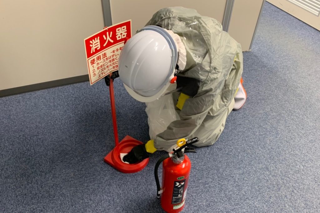 自身の身体にウイルスが付着しないよう、万全を期した装備です。