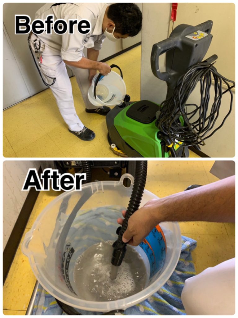 こちらの機械はスクラバーといって洗剤をタンクに入れ