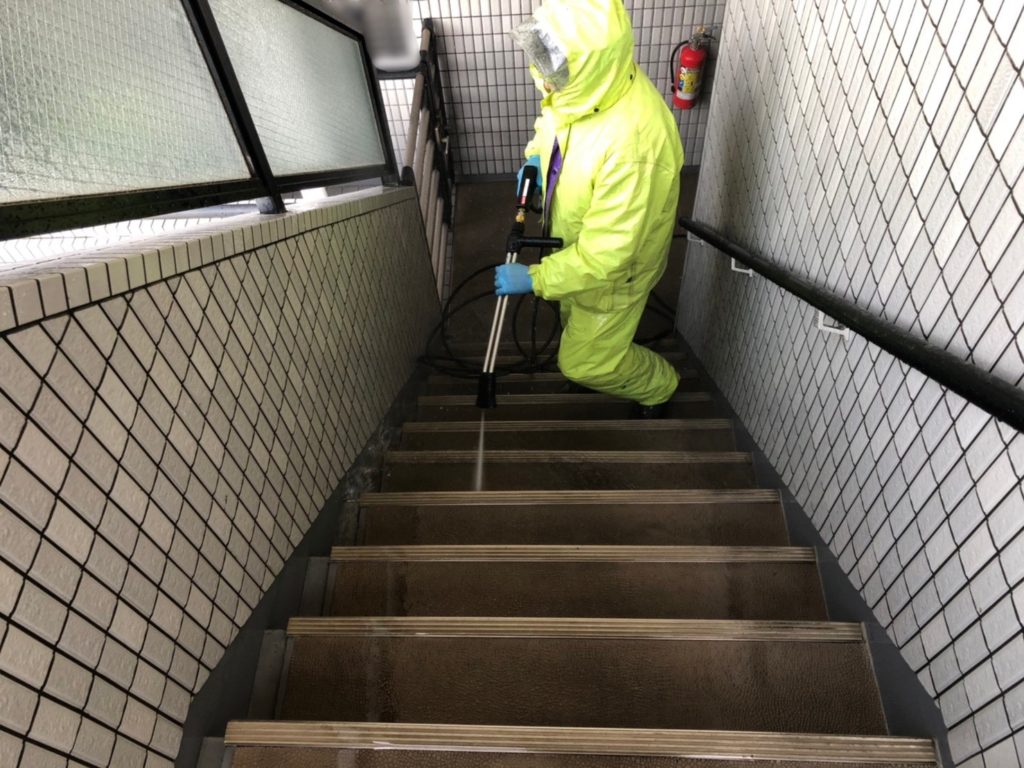 こちらマンション様の廊下や階段の清掃作業中なのですが、