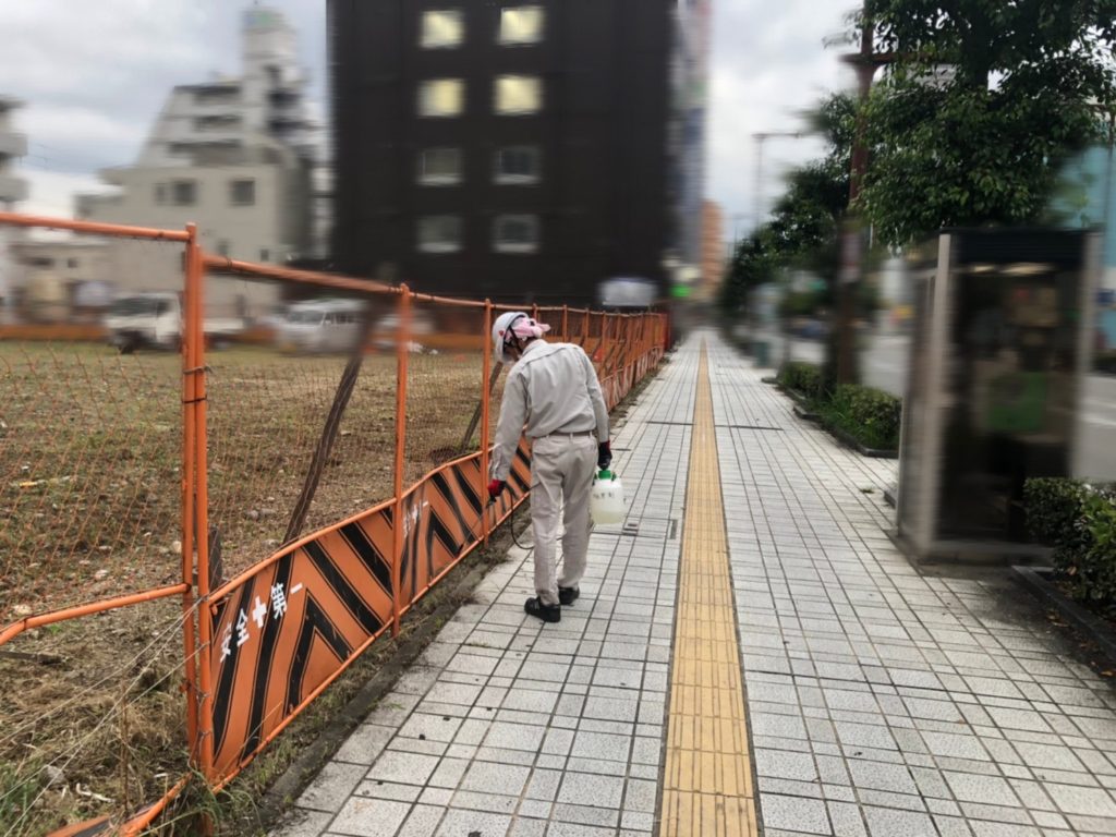 そして仕上げに土地を保つために除草剤を散布していきます。
