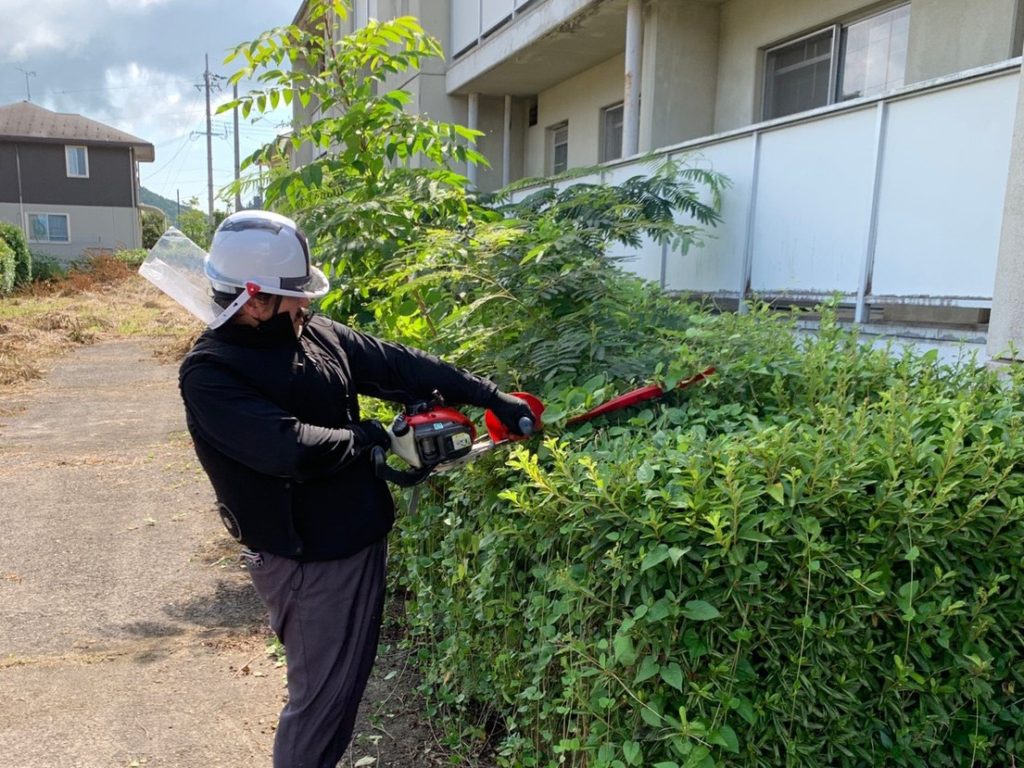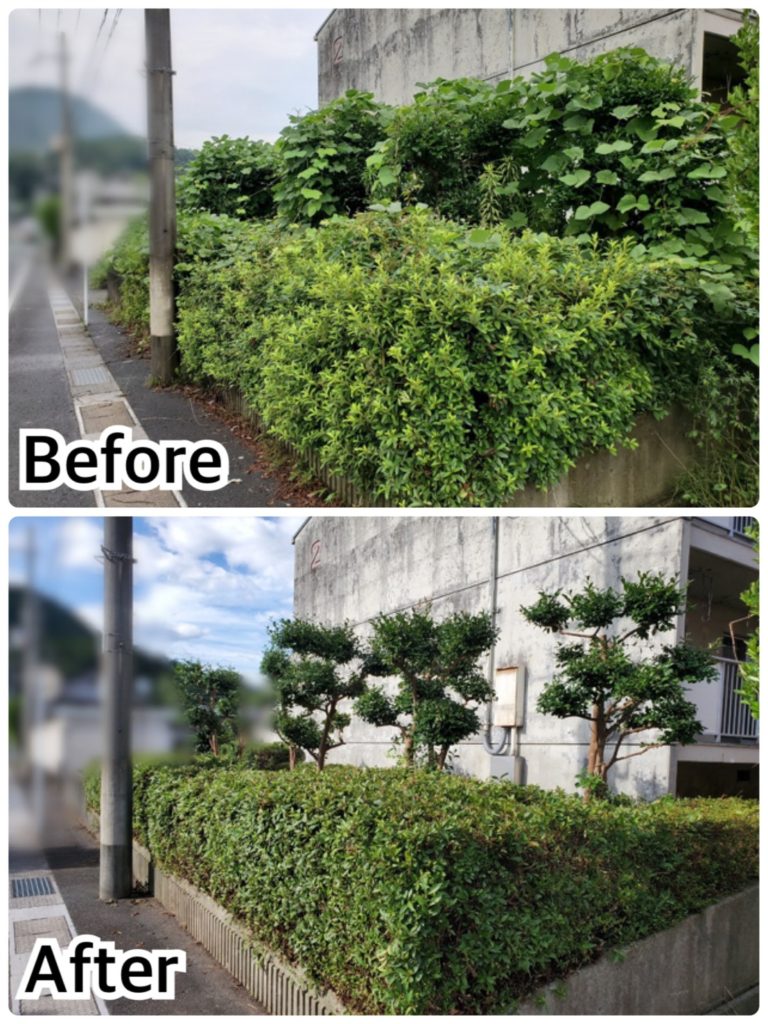 無造作に伸びていた植え込みをきれいにカットしたり…