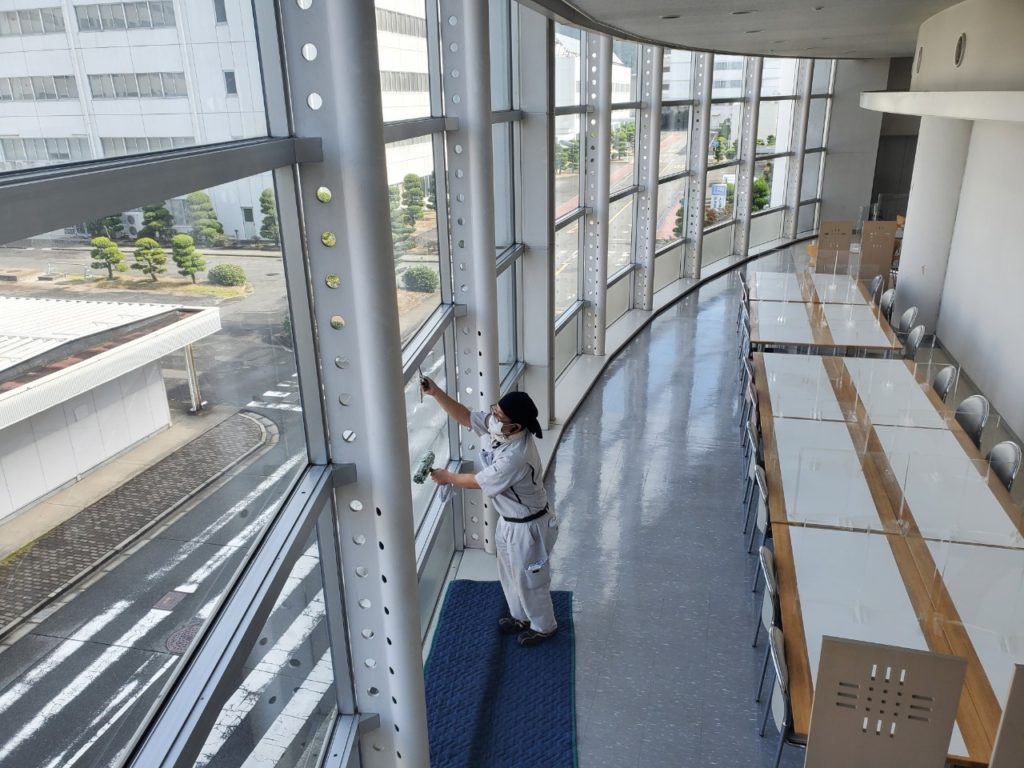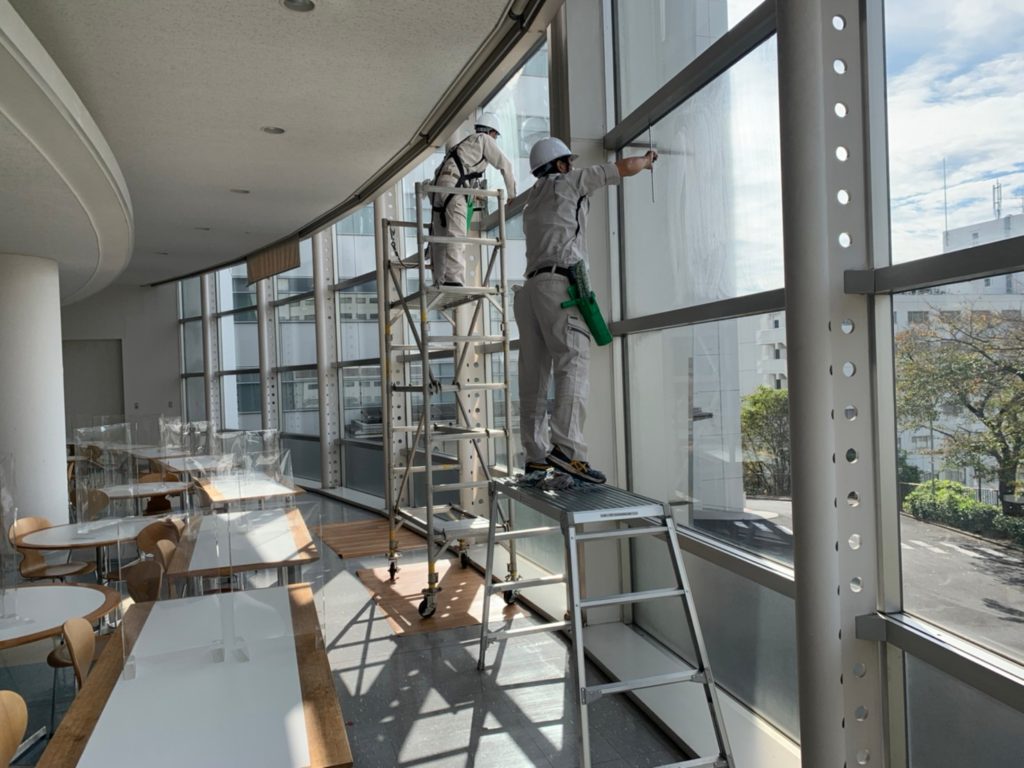 大手家電メーカー様の食堂のガラス洗浄です!