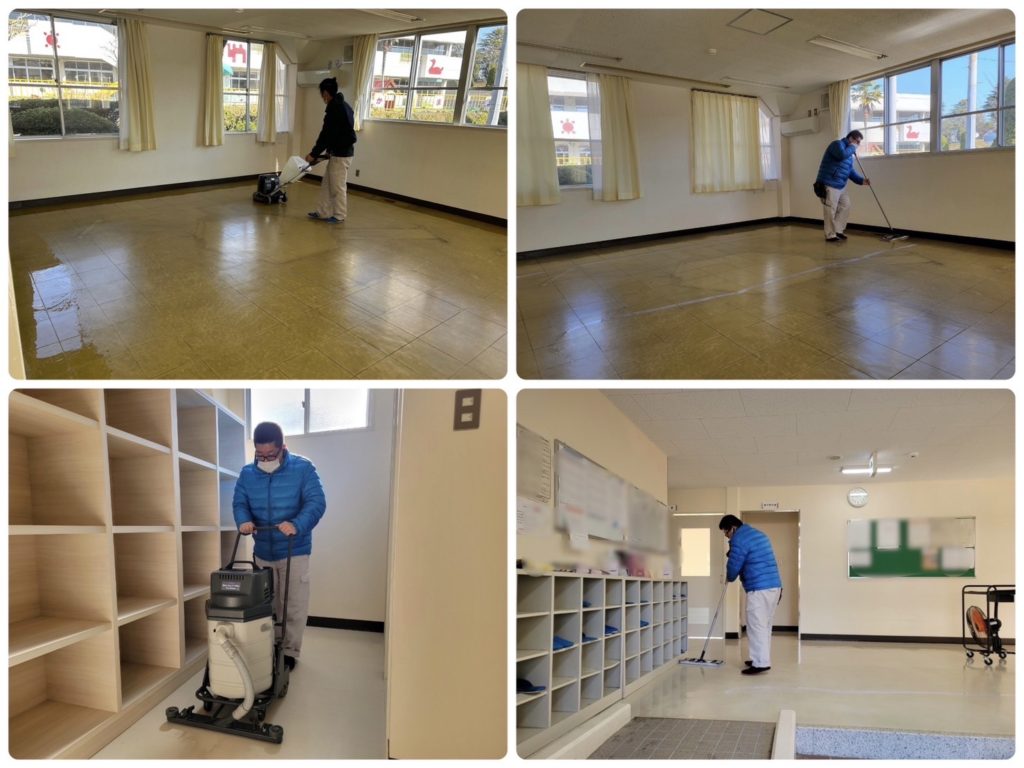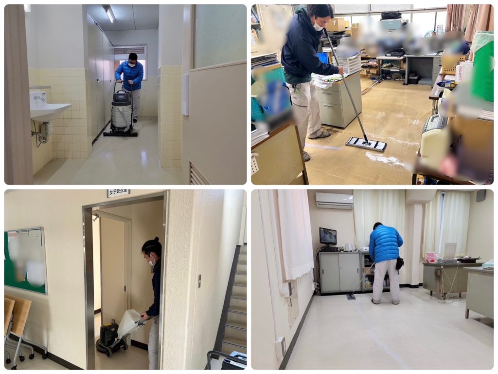 今回は体育館の中ではなく更衣室や通路スペース、お手洗い、事務所などのご依頼でした📝🌱