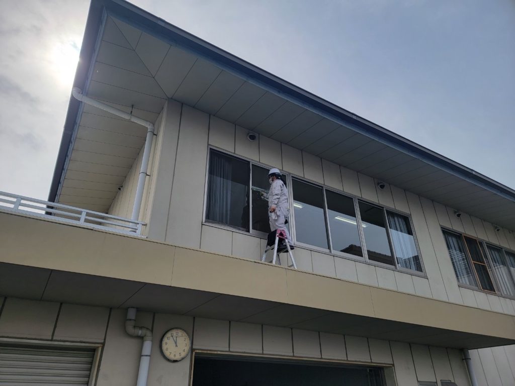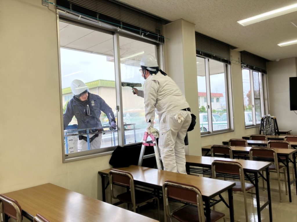 高所の窓はどうしても中から拭くことは出来ないので
