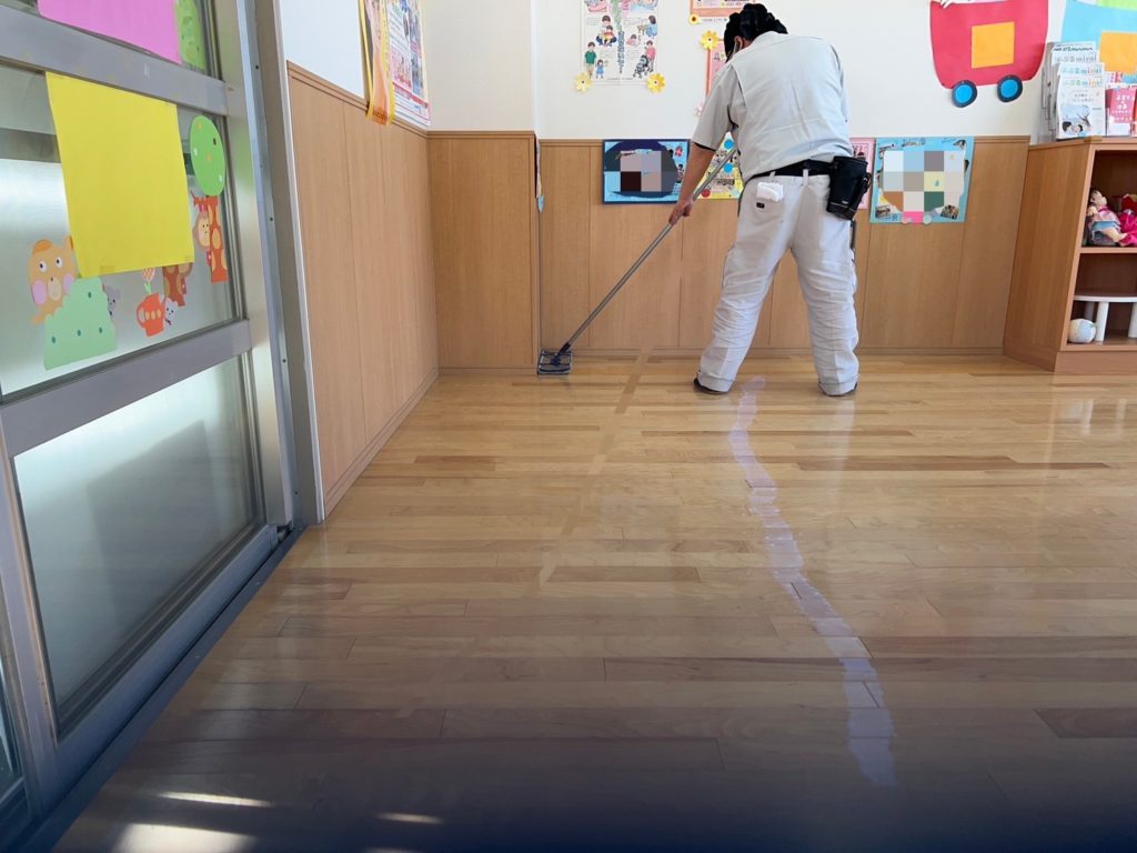 保育園関連施設の床洗浄ワックスへ行っておられた模様です📣( ¯ᒡ¯ )و