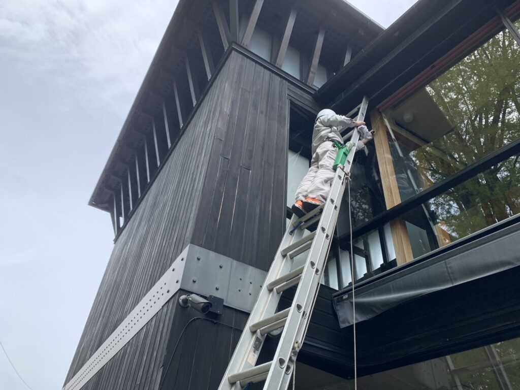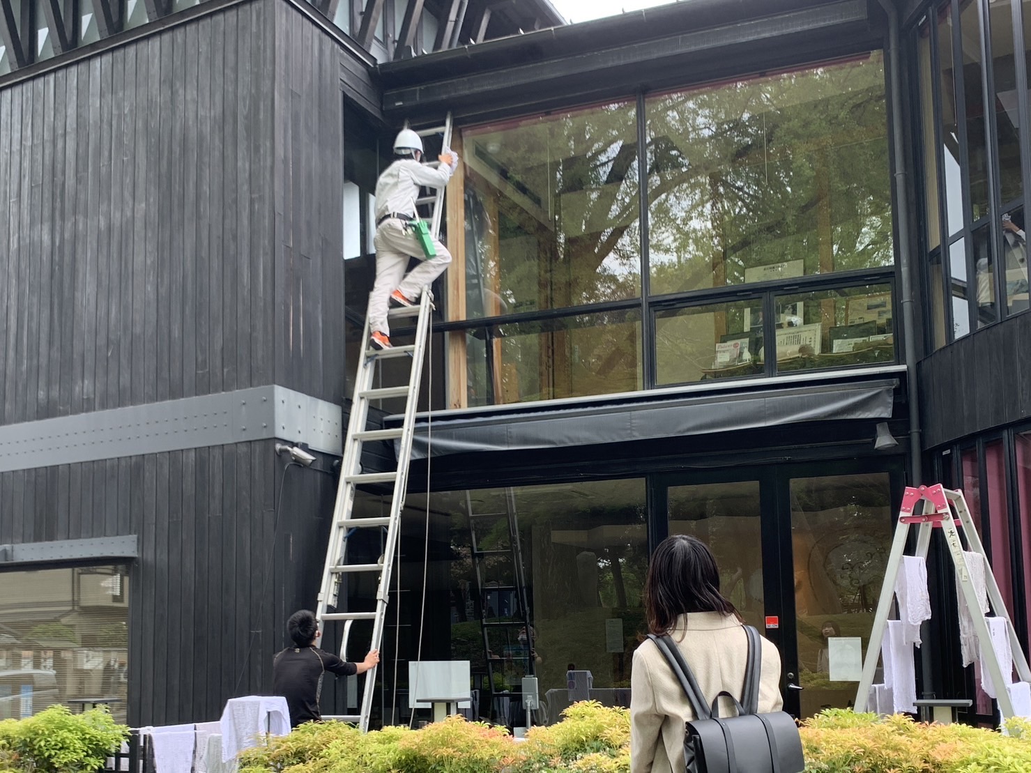 窓ガラス清掃だけでなく蜘蛛の巣などの除去もしていました( ¨̮ )