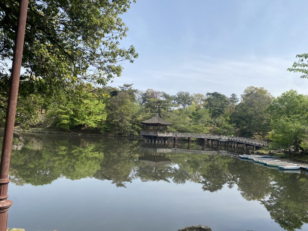 そして、先日京都で窓ガラス清掃を行ったラグジュアリーホテルが奈良にもあるとの事でこの浮見堂を通り、車越しから観察をしました( Ꙭ)