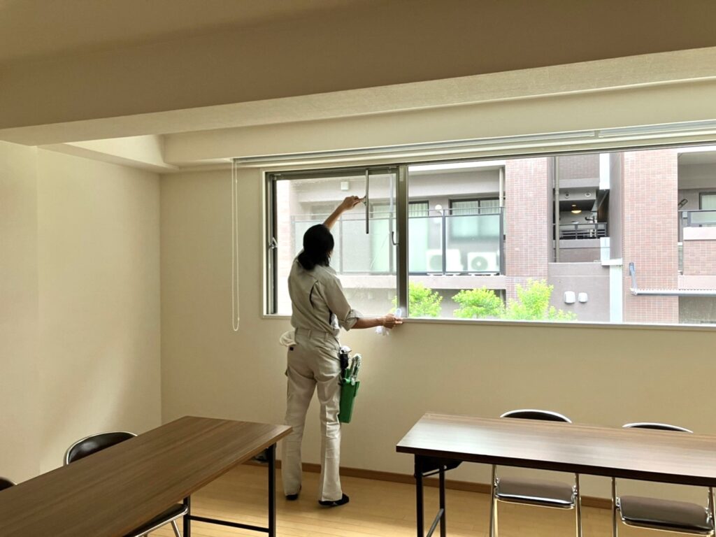 床以外にも窓ガラスの清掃も行っています(^-^)/