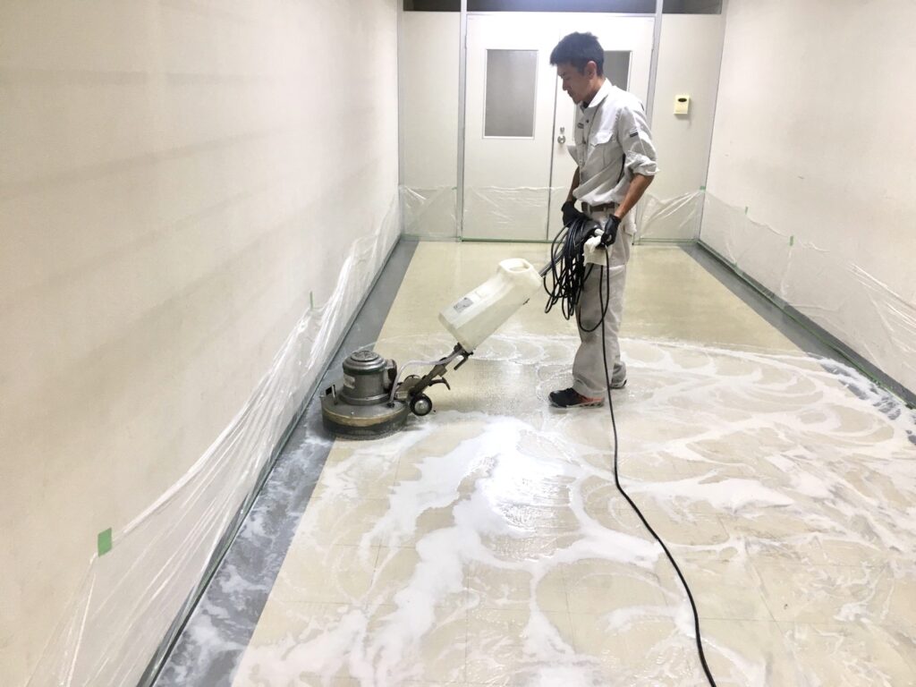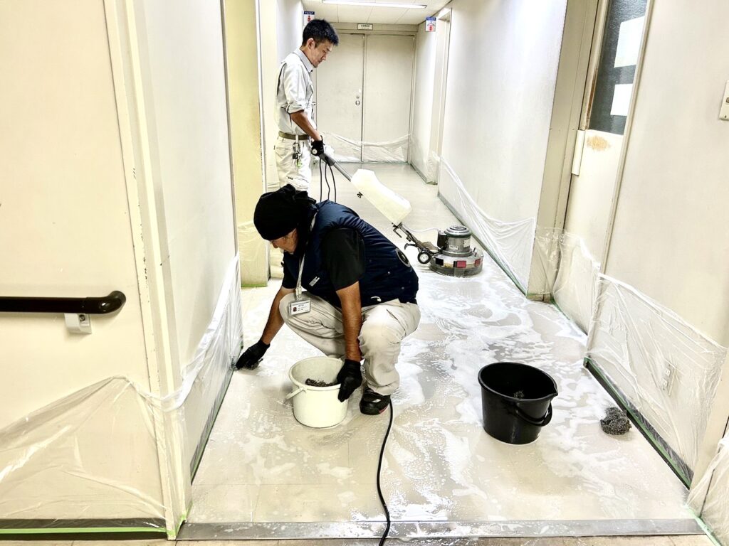 今回は、某大手企業さんへ床ワックス剥離作業へ行かれました!