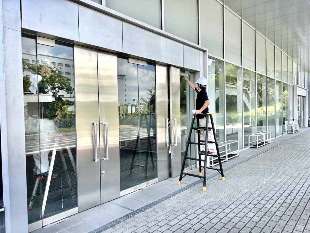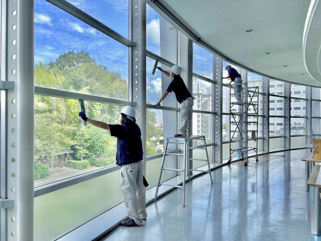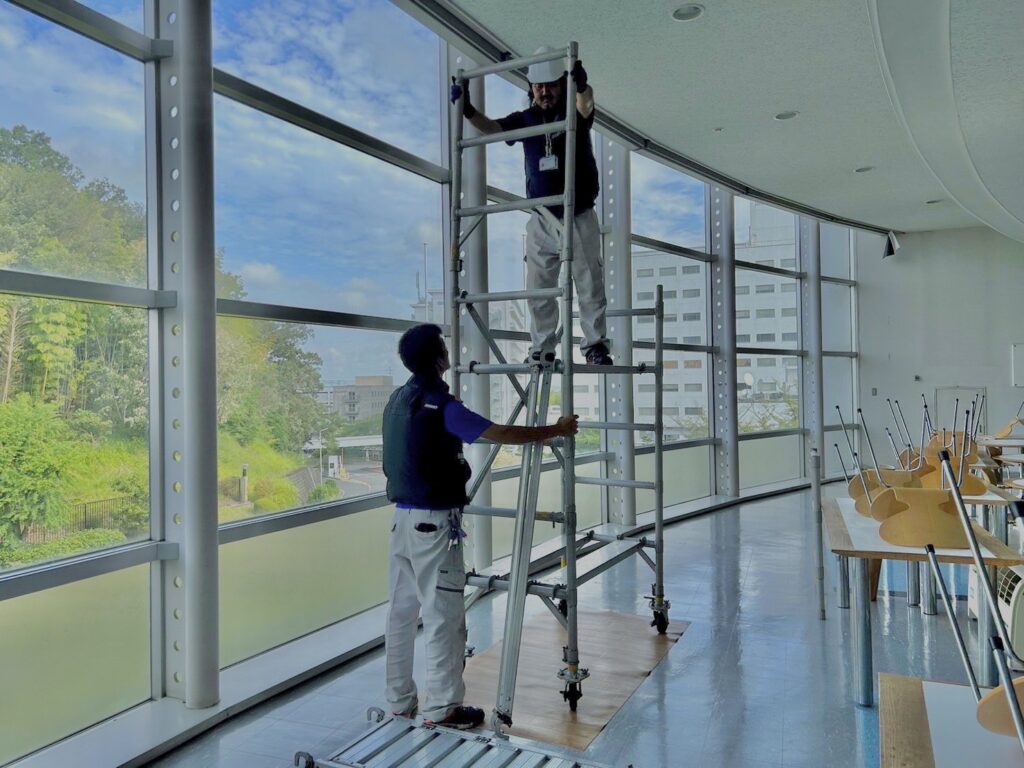 このように弊社では、清掃する場所に合わせてさまざまな脚立を駆使しながら綺麗にさせていただきますのでお気軽にお問い合わせください☏