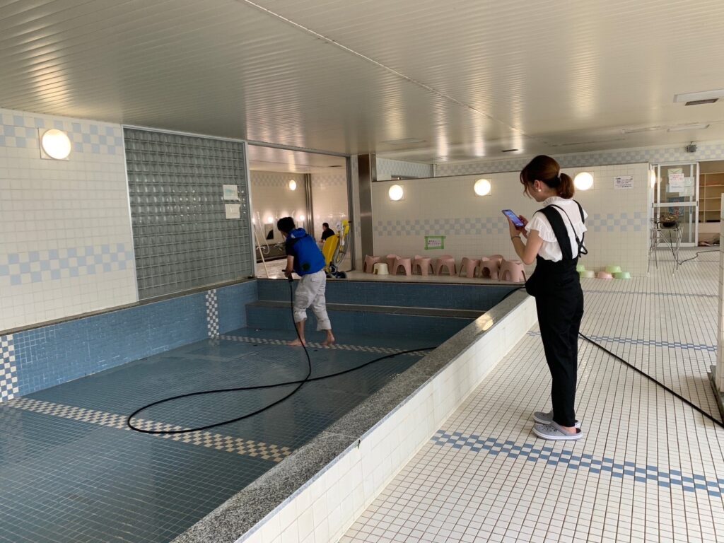 午後からは社員寮に移動して、とても大きい男子風呂の清掃作業にお邪魔しました🛀✨