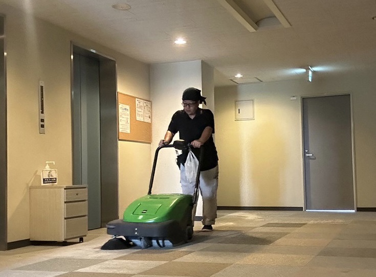 この‪‪‪ スイーパーという機械でカーペットに入り込んだホコリや小砂を取っていきます!
