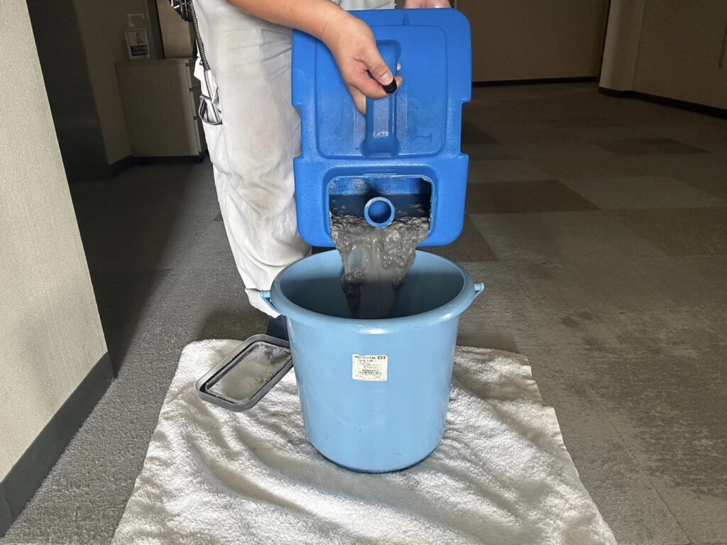 この写真は、吸い取りタンクに溜まってた汚れた洗浄液です( Ꙭ).ᐟ‪