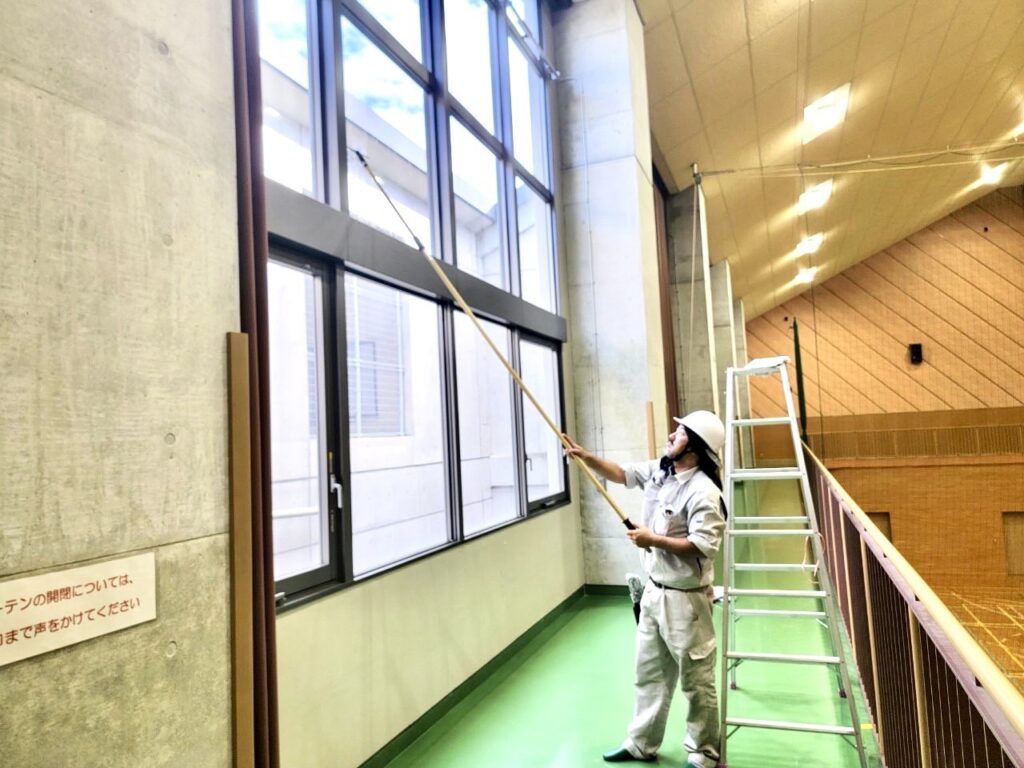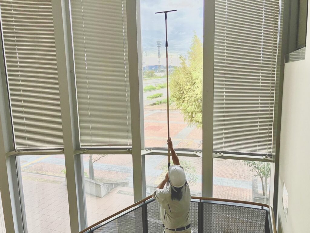 我が社ではこのように高さに合わせて清掃器具を変えながら清掃させていただいています( ー̀֊ー́ )