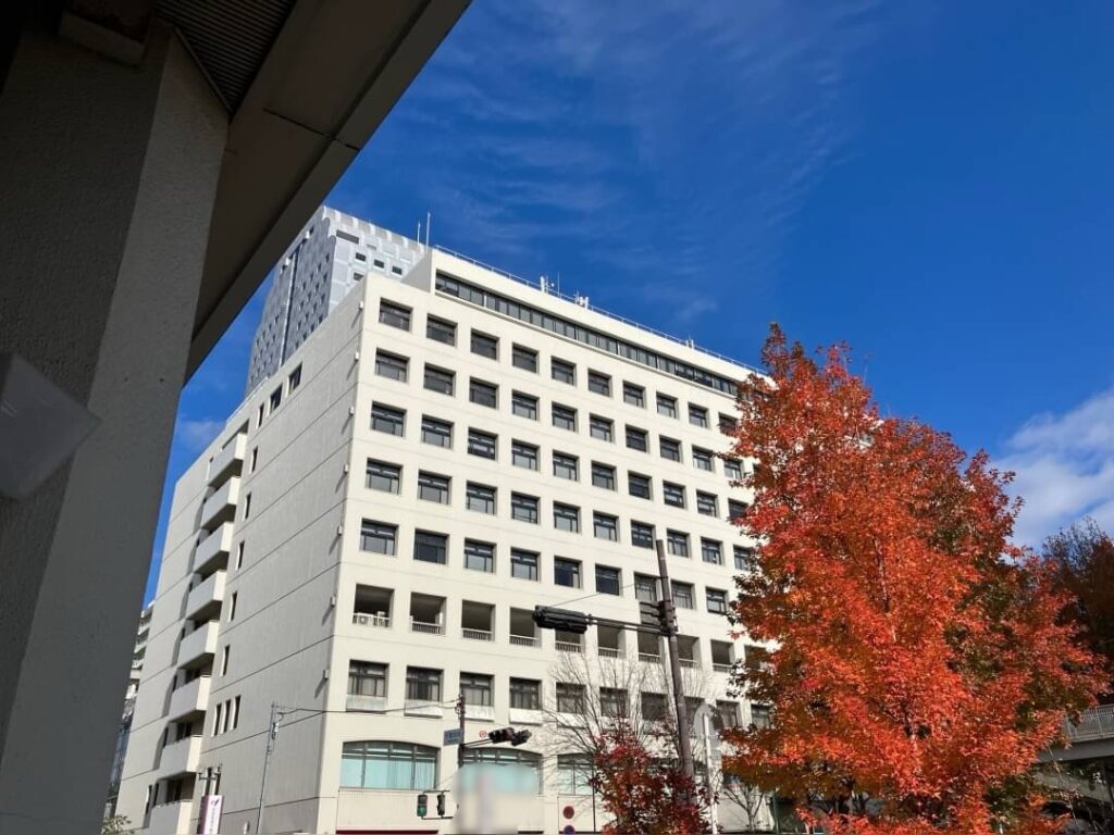 まだまだ日中は暖かいせいか、紅葉が白いビルに映えて、とても綺麗でした。