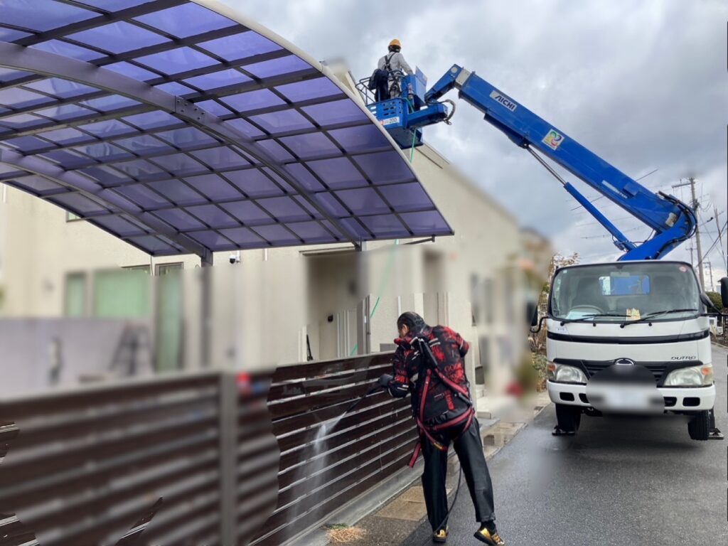 さて今週は、某一般ご家庭の壁面とカーポートの清掃をご紹介いたします。🏠🚗