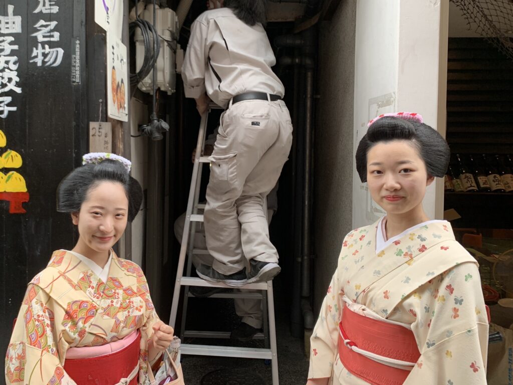 その後は作業中に知り合いの舞妓さんが通りかかった様子もパチリ📷