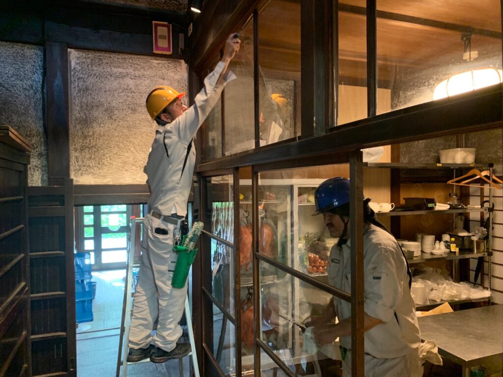 ワイヤー作業は安全の為、日程変更をして内側の窓などを先行いたしました。