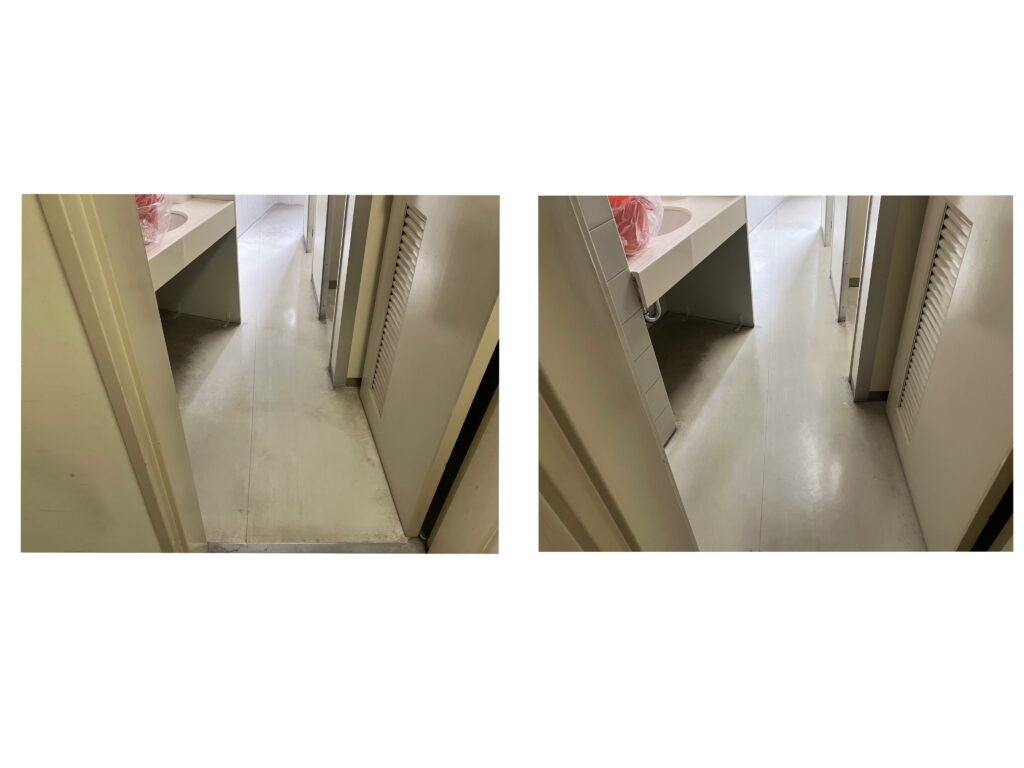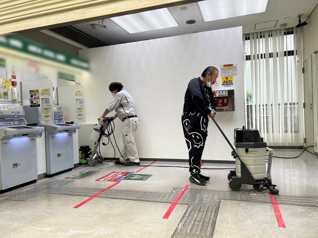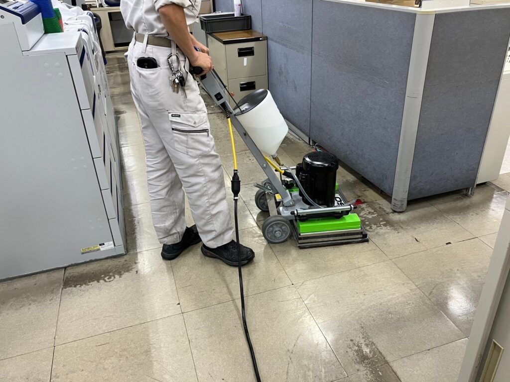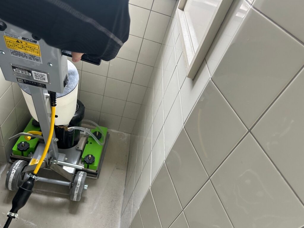 粉塵が舞わない程度の水を塗布し、歩行スピードにてスクラブします。