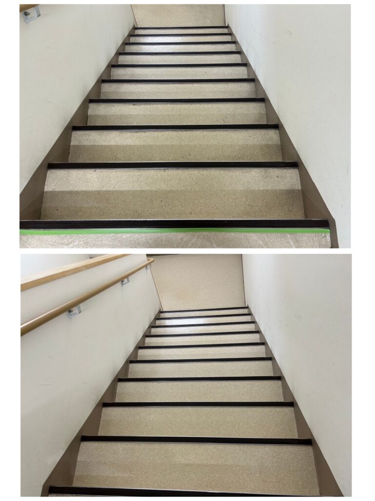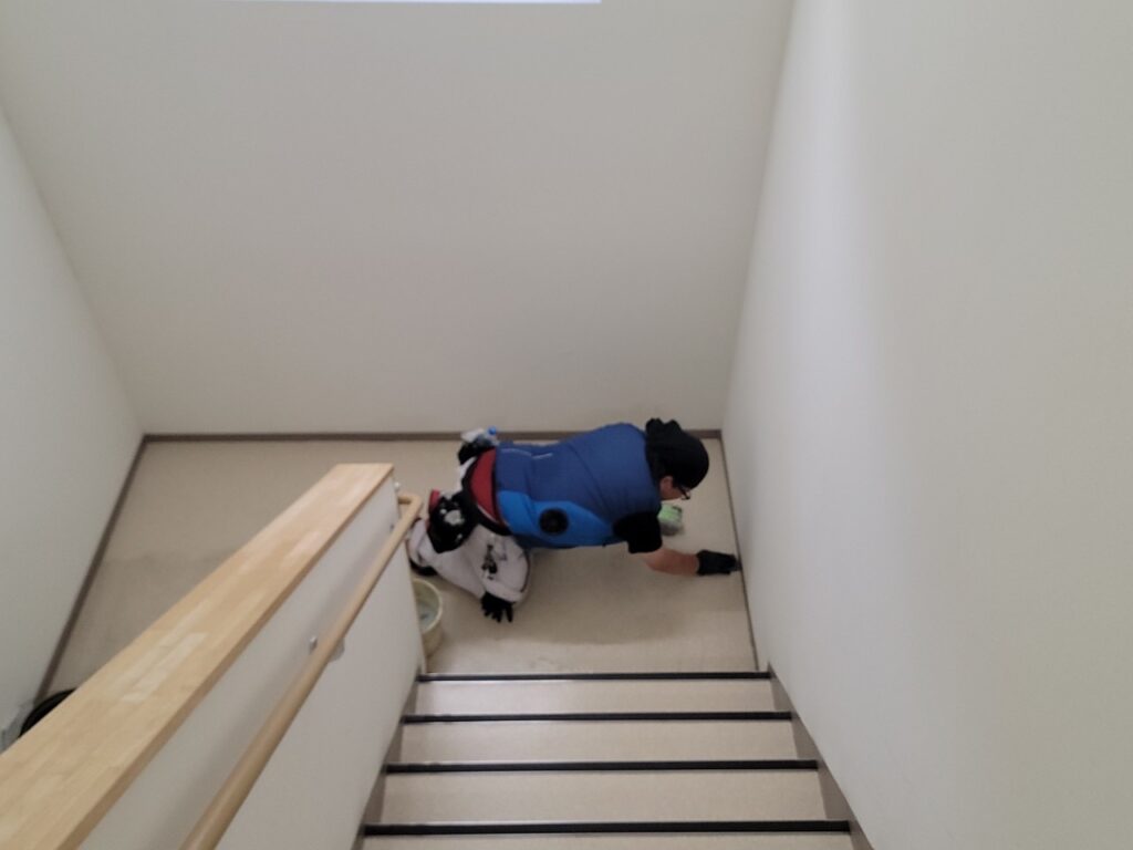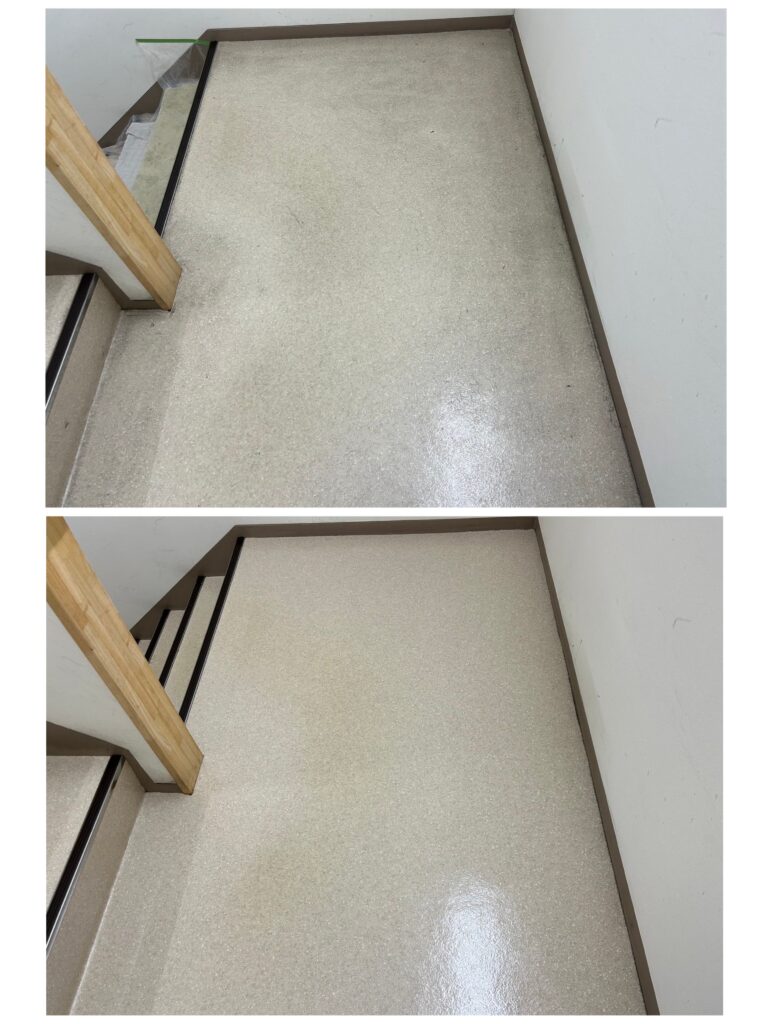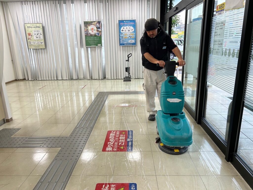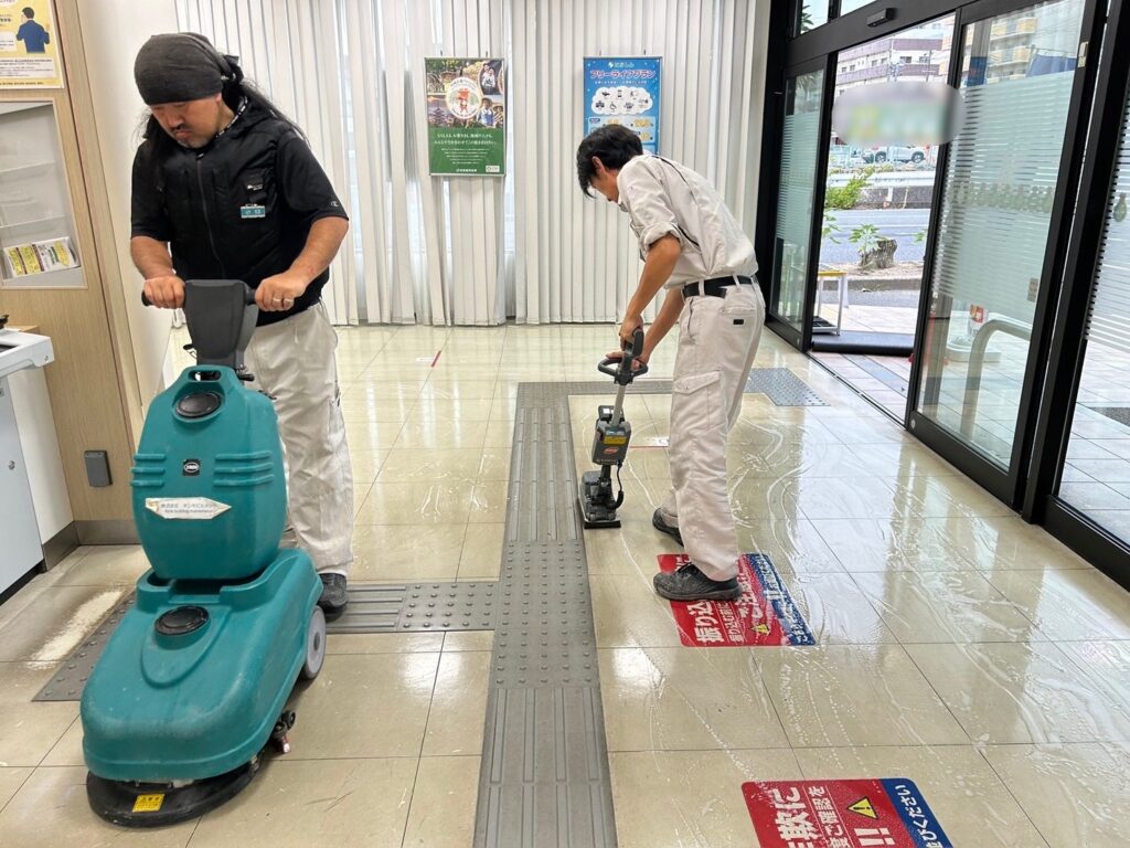 某信用金庫様の定期清掃と階段の剥離作業をご紹介いたします。
