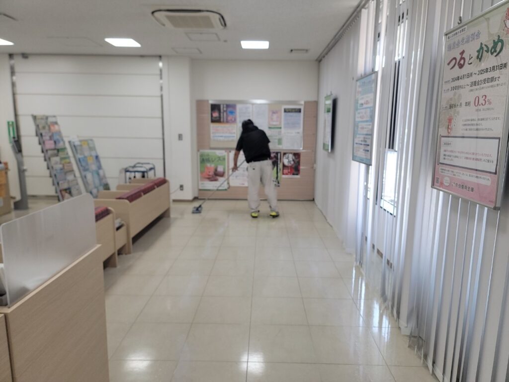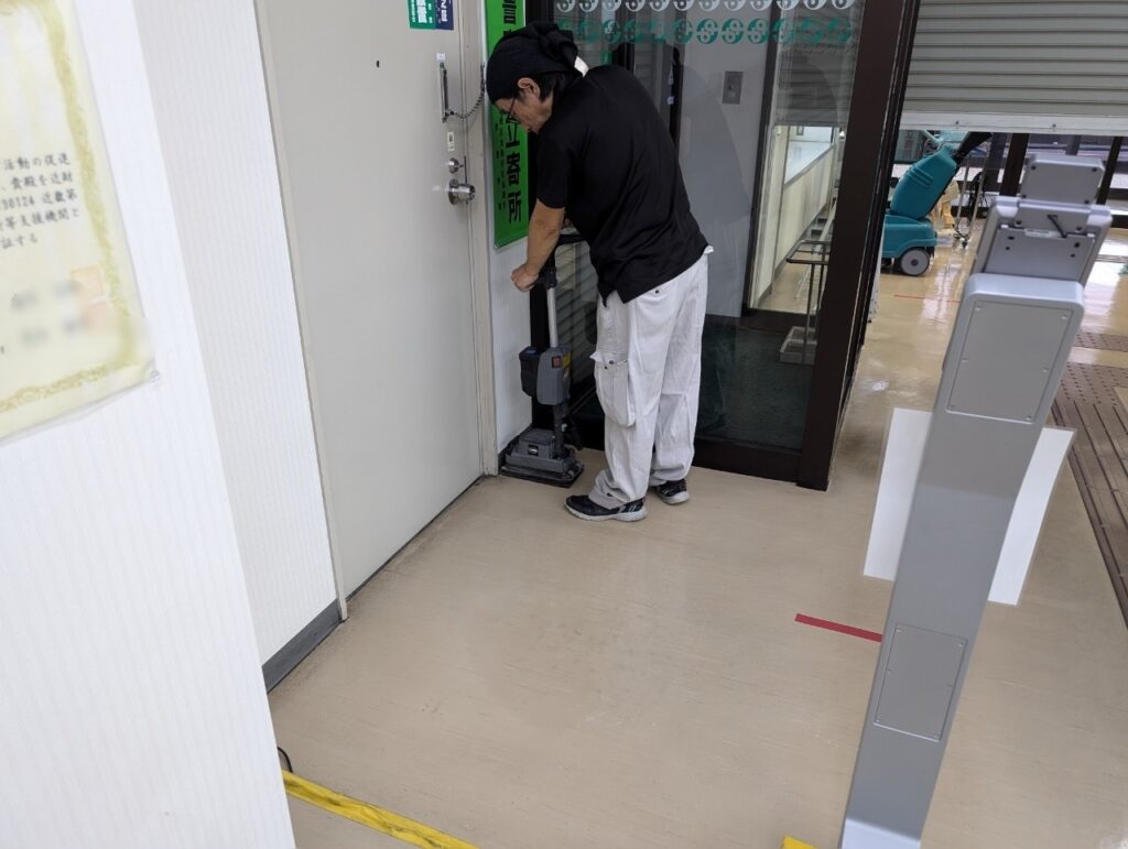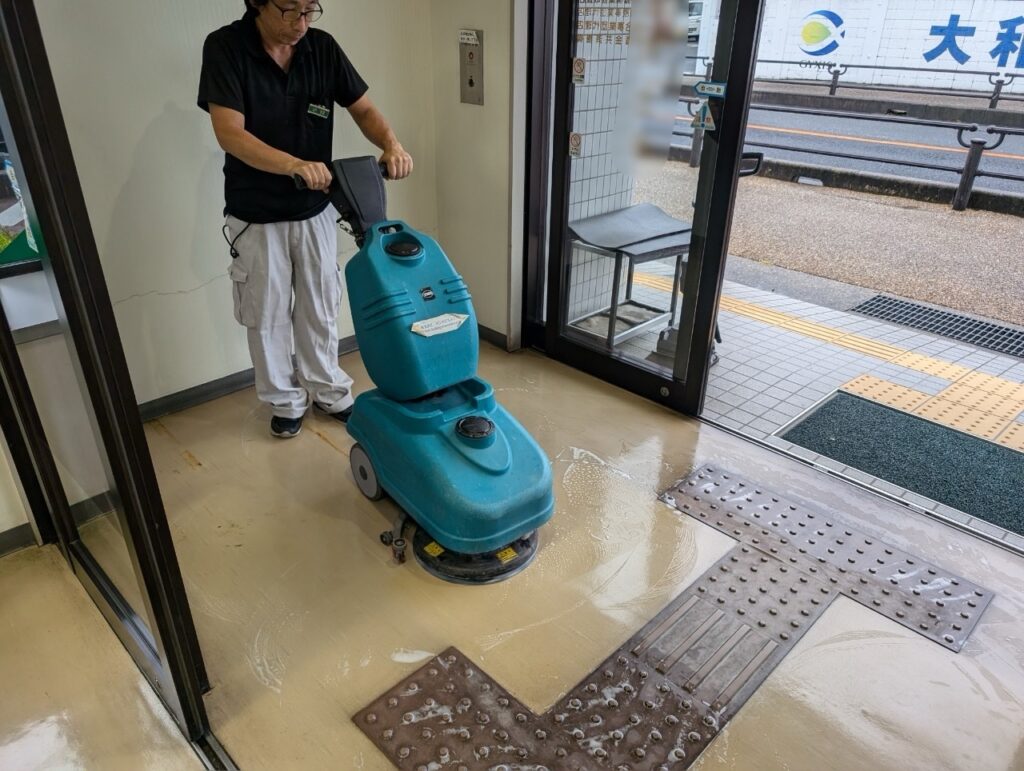 機械洗浄するだで綺麗になり、床のトーンが明るくピカピカになりました。