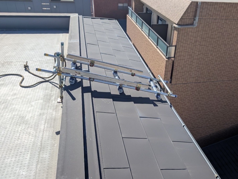 作業員の荷重にも耐え、庇・雨樋を破損させることなく、この日も無事に作業を終えました。