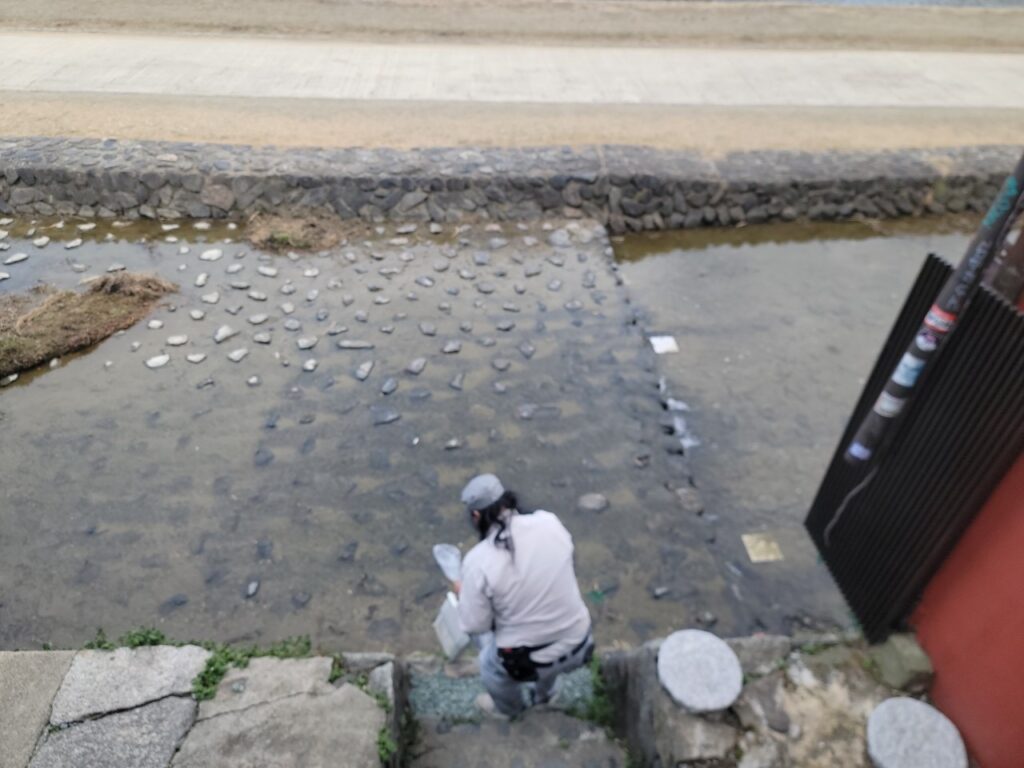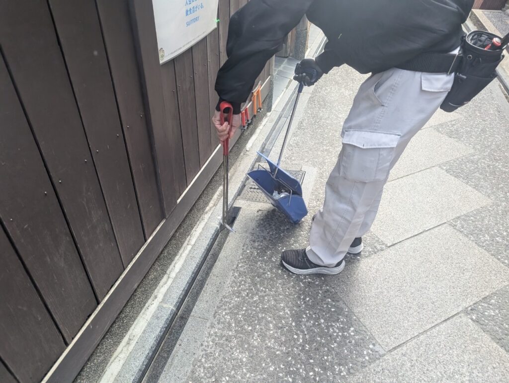 先斗町ならではの京都らしい町家が軒を連ねていますね。この日は時間帯的にも車や通行人も少なく、ゴミ拾いがしやすかったです。
