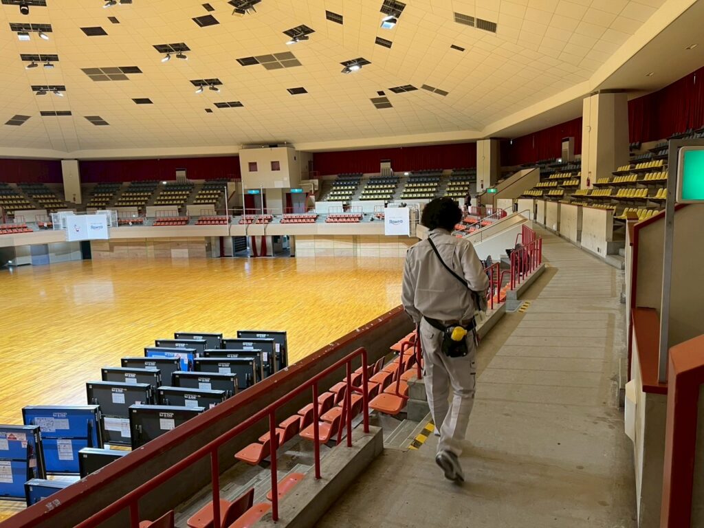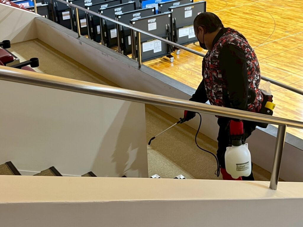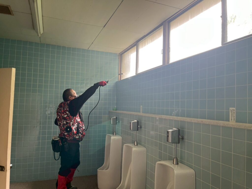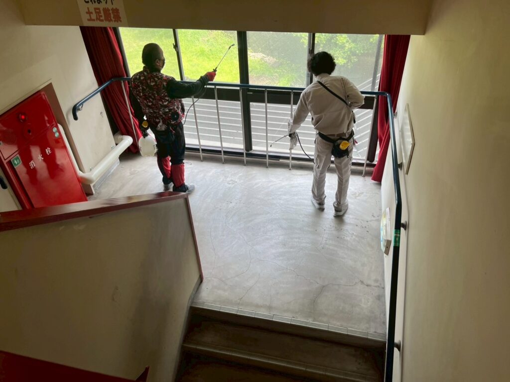 続いては、私も同行した某体育館の害虫防除作業をご紹介いたします。