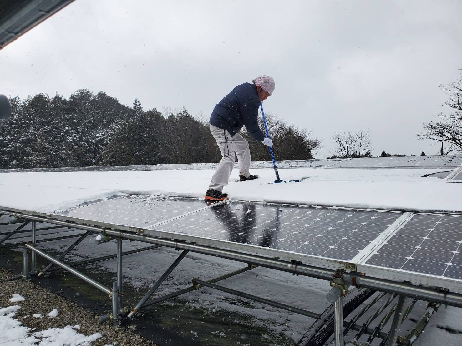 普段の巡回清掃、各機器稼働確認、各種立合、パネル洗浄、パワコンフィルター洗浄、雪降ろしなど出力維持と施設環境維持を行っております。