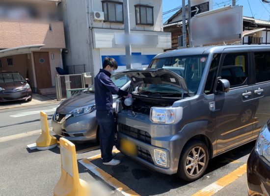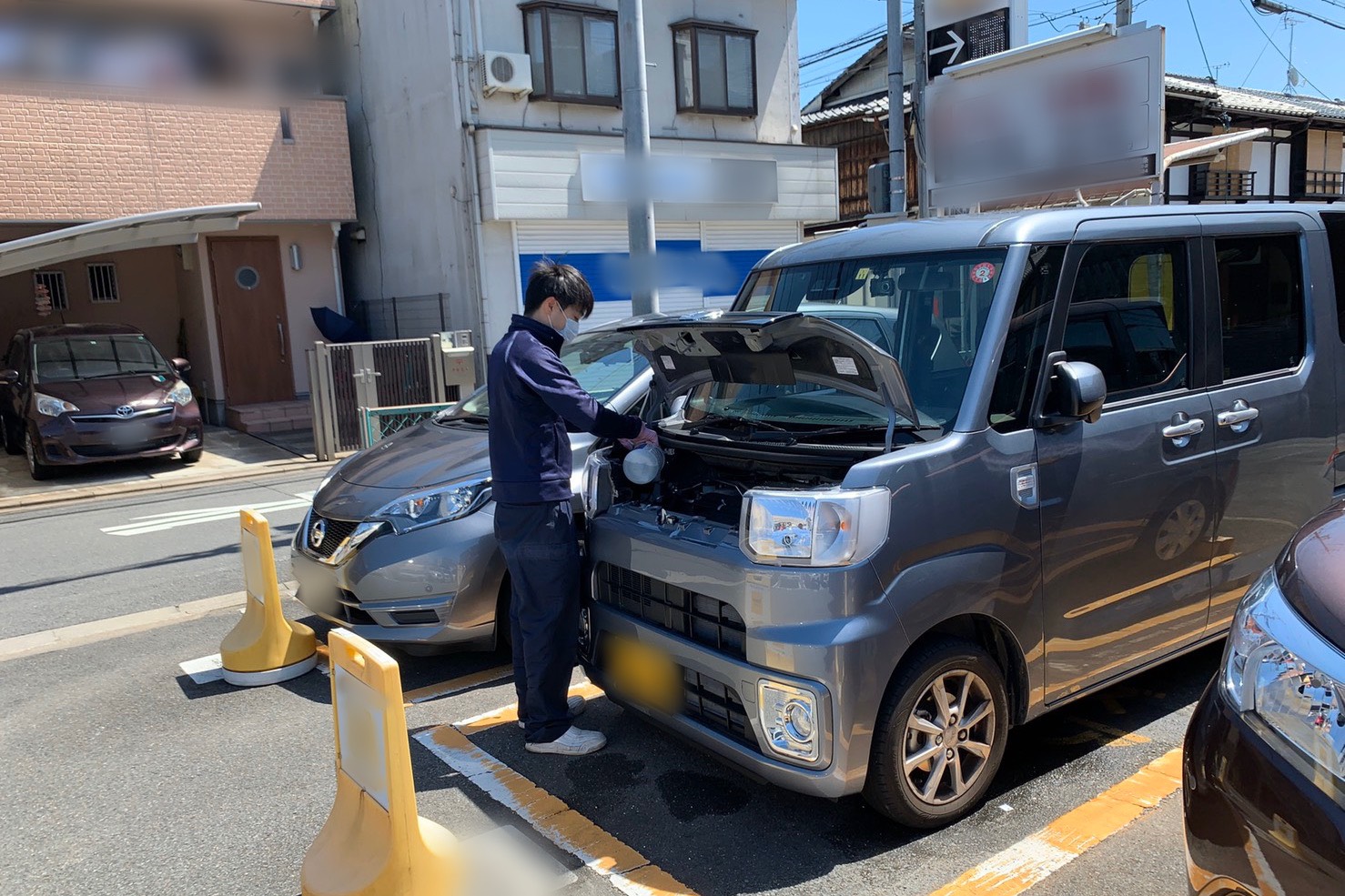 駐車場据置型レンタカーの定期メンテナンスを行っています。