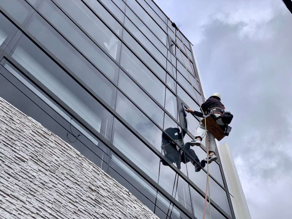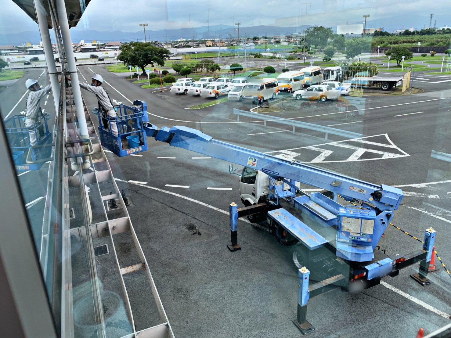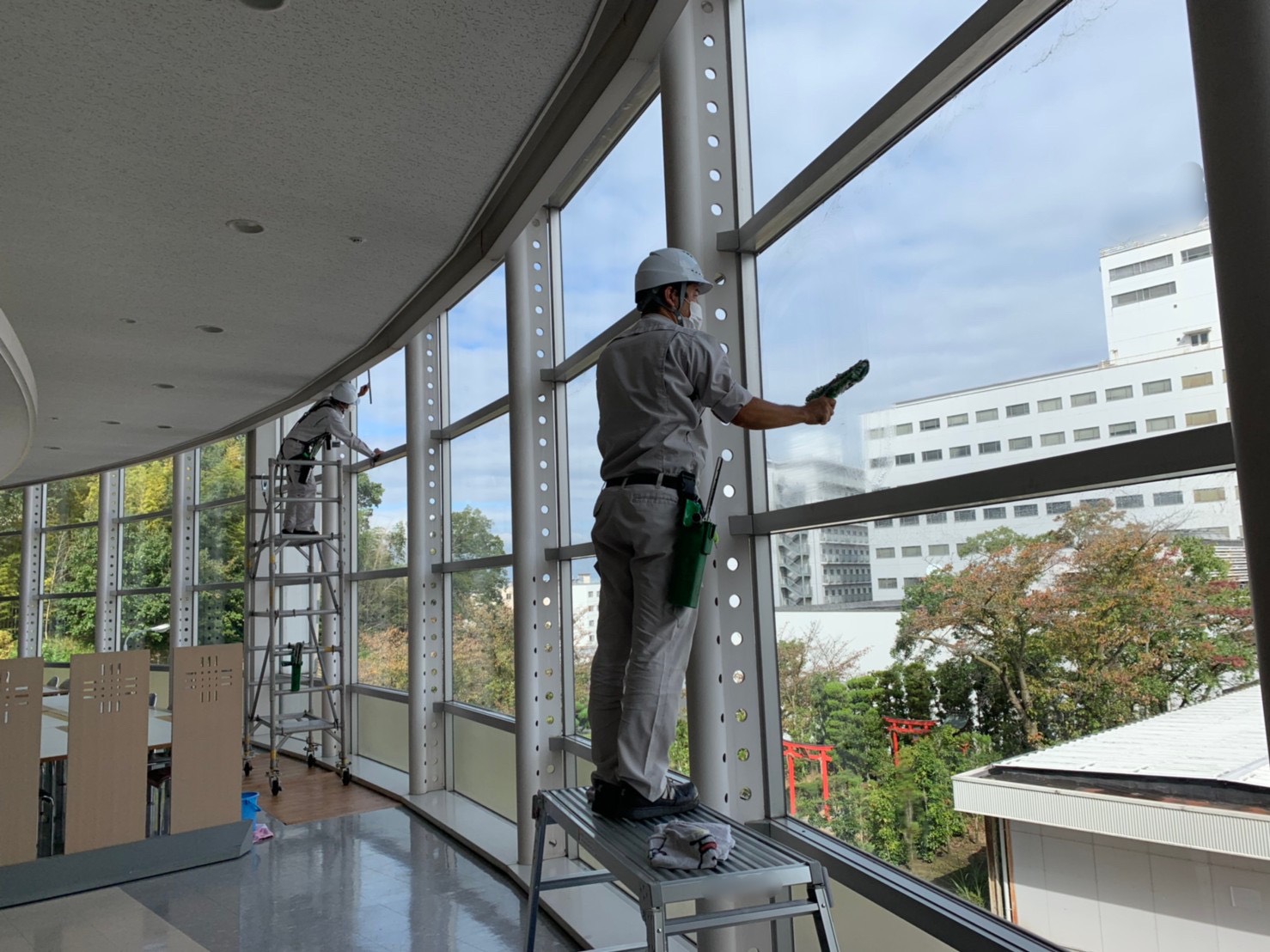 ビルや工場などで、定期的な外壁や窓などのガラス洗浄を行っています。